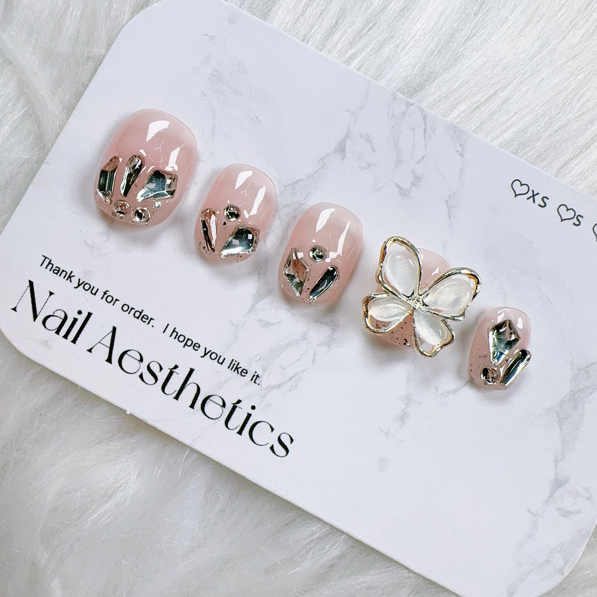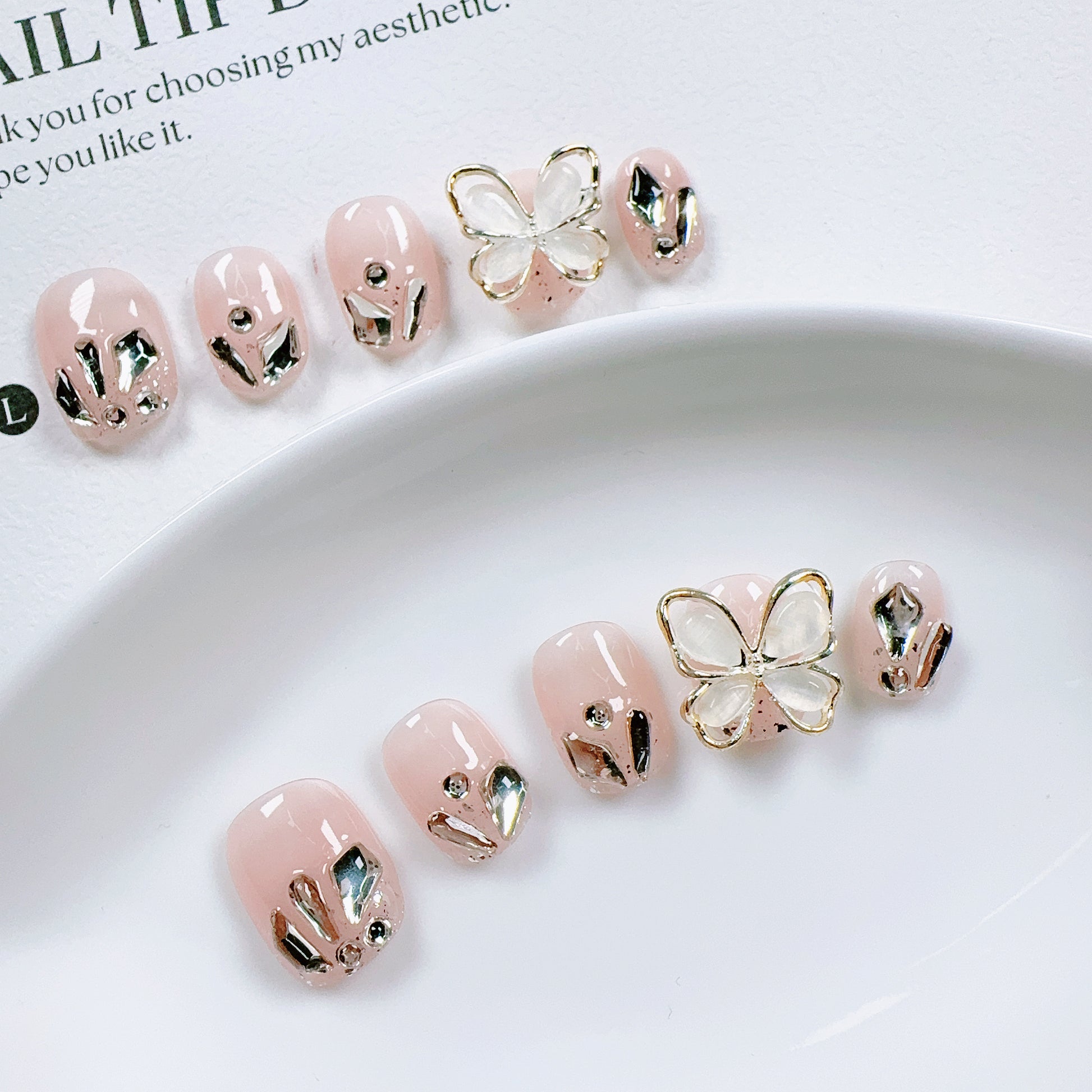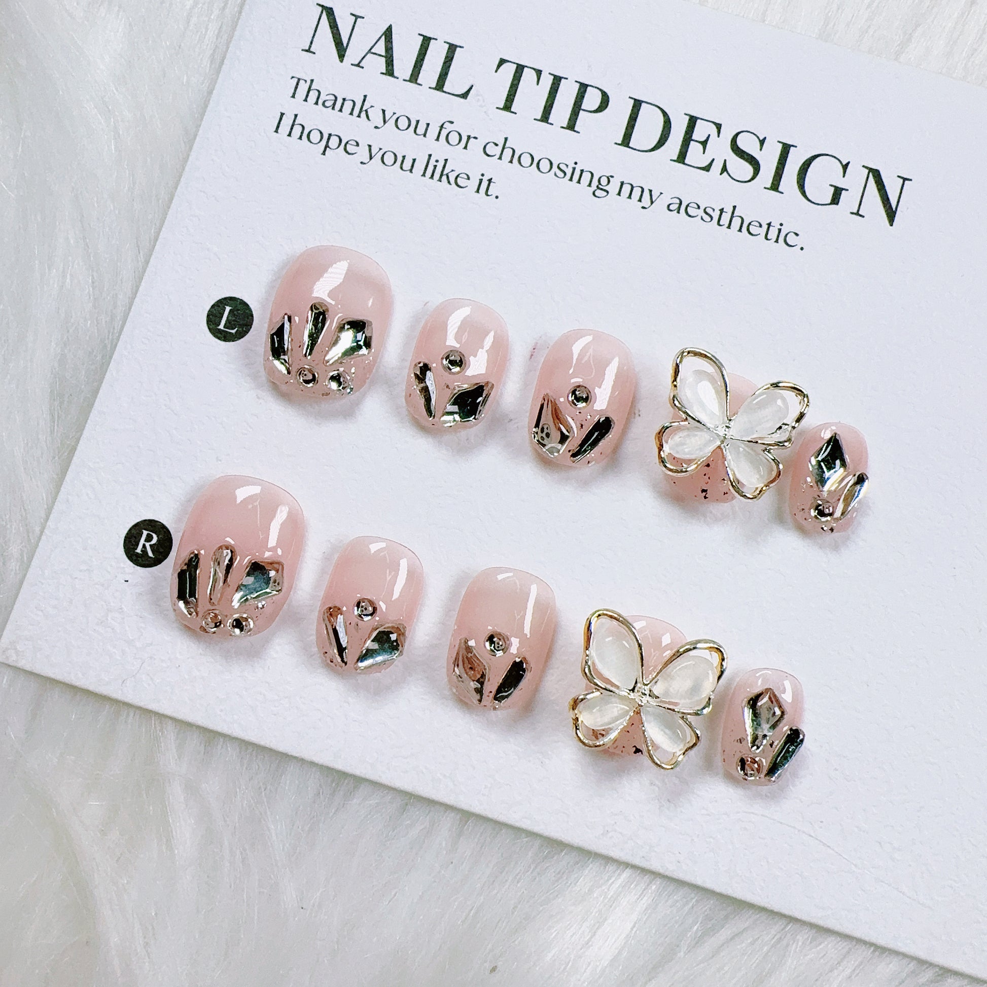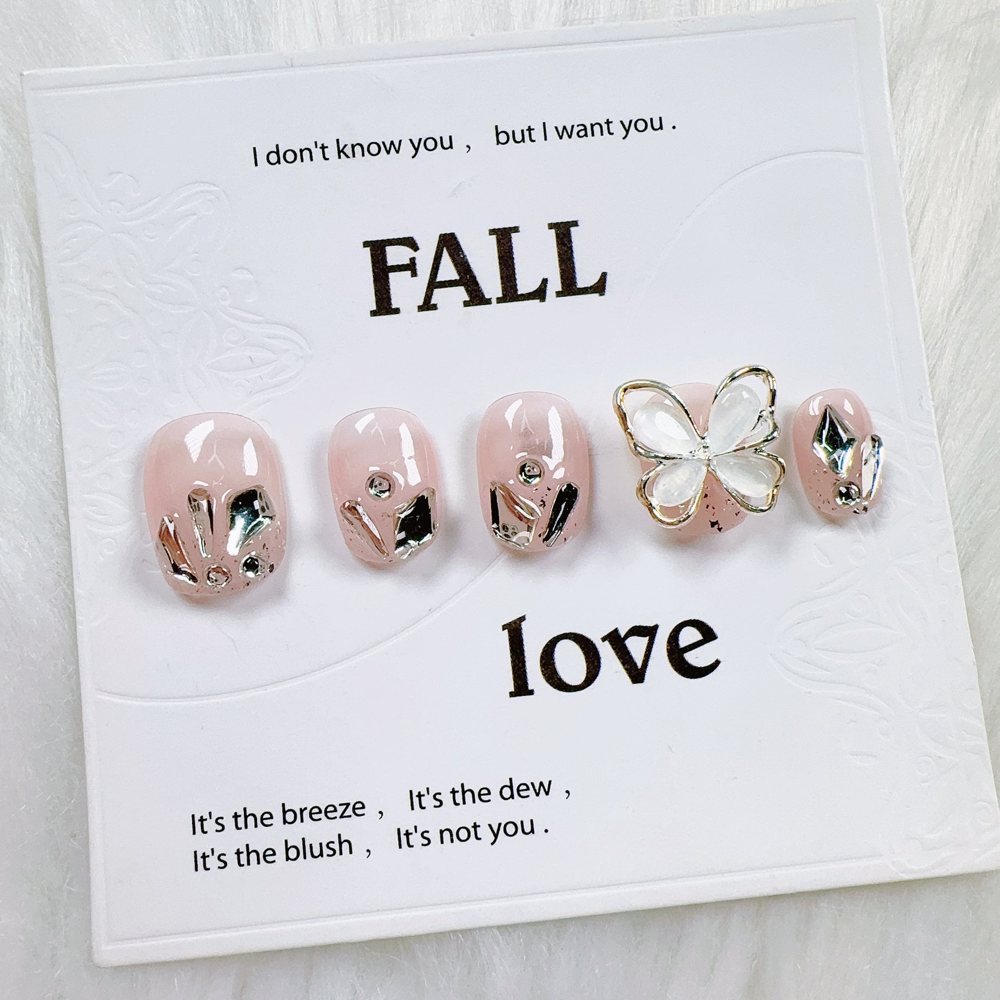 Soft pink paired with petal-like chrome accents and a signature 3D butterfly, blending natural grace with glamour.