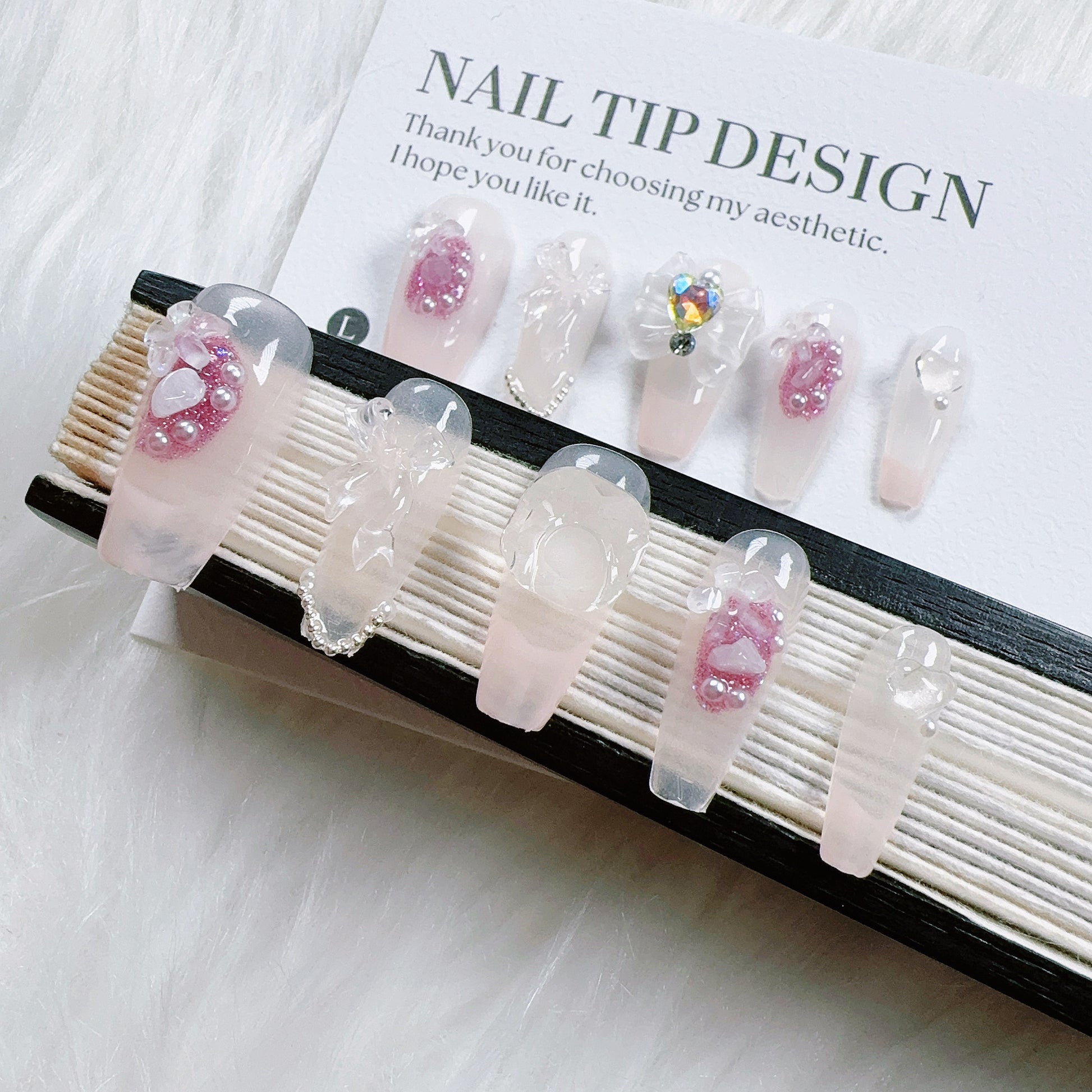 A fairytale-inspired design that fuses translucent textures, candy pink hues, and intricate 3D details for a sweet and sparkling statement.